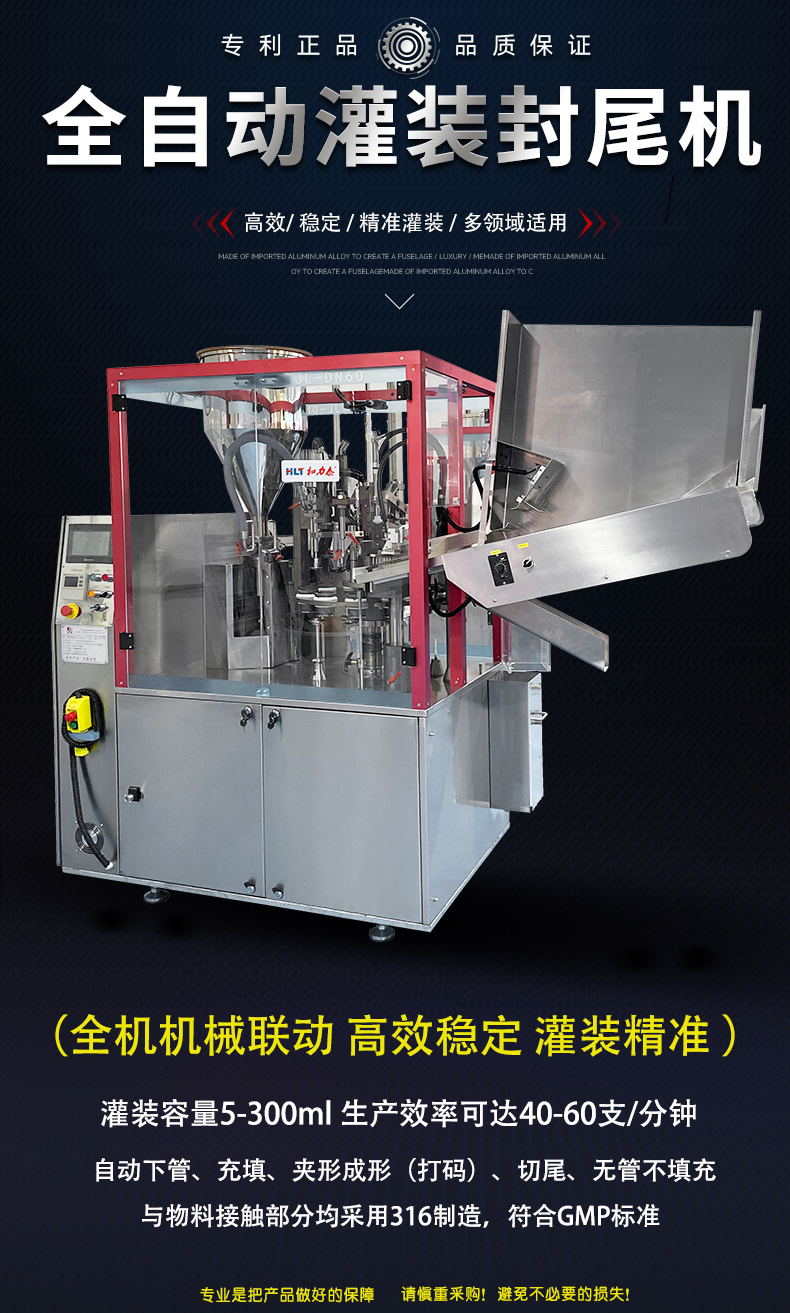 和力泰自主研發(fā)和生產(chǎn)的軟管灌裝封尾機(jī)有如下特點(diǎn):